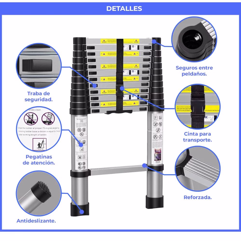 Escalera Telescopica 2 Metros Aluminio 6 Escalones